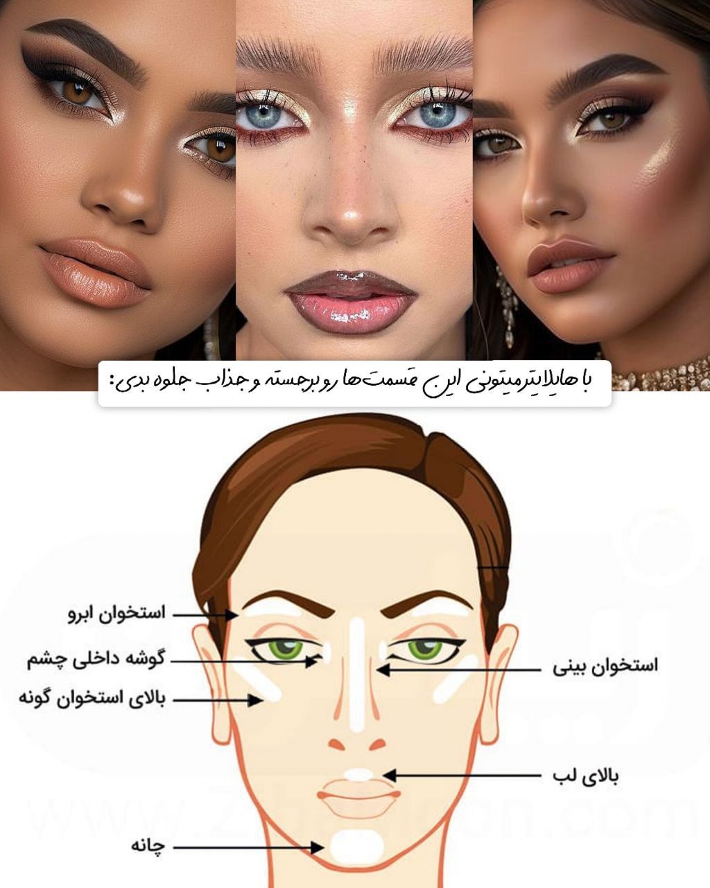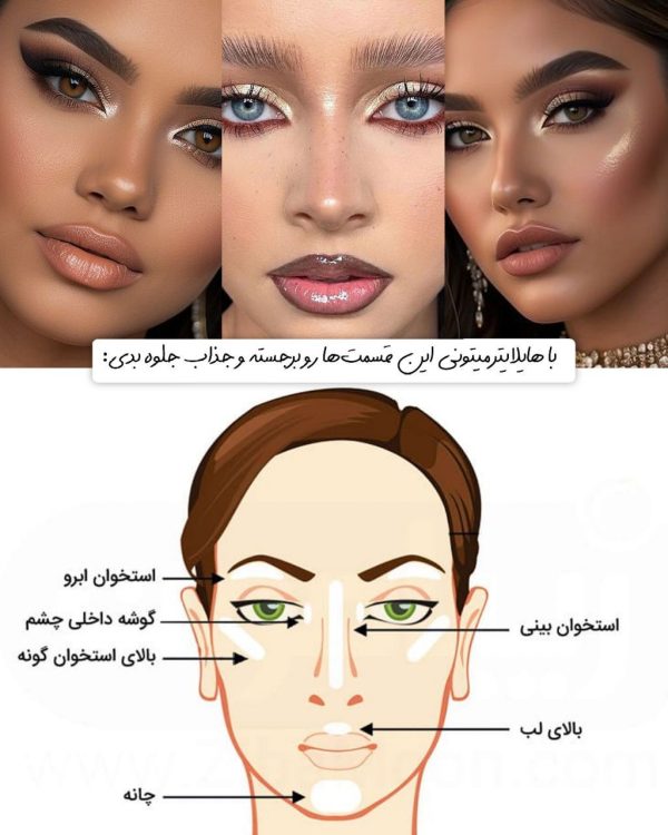 مناسب چشم و لب، هایلایتر مرکزش برای برجسته جلوه دادن نوک بینی، گونه، بالای لب و زیر ابرو عالیه